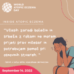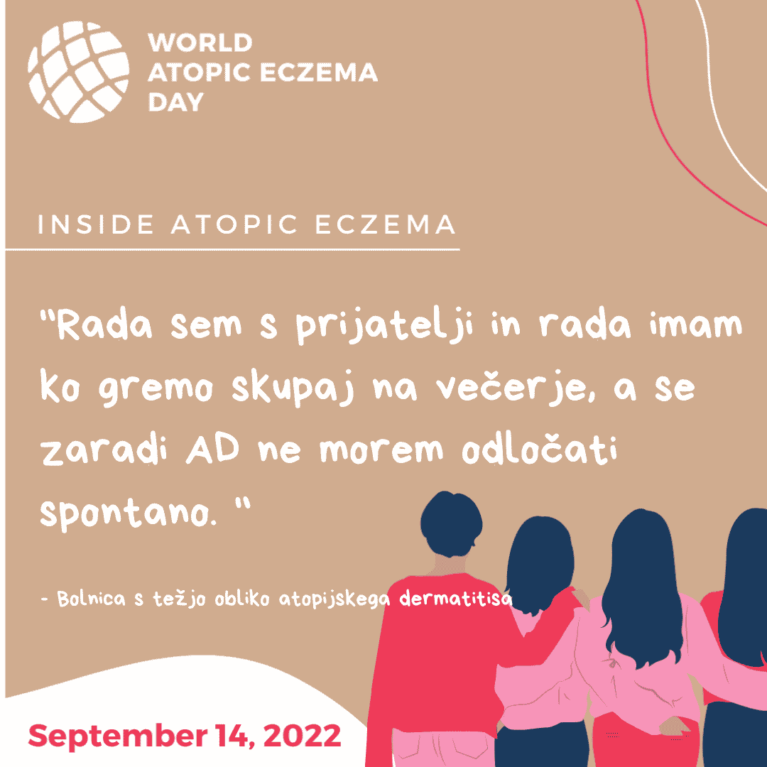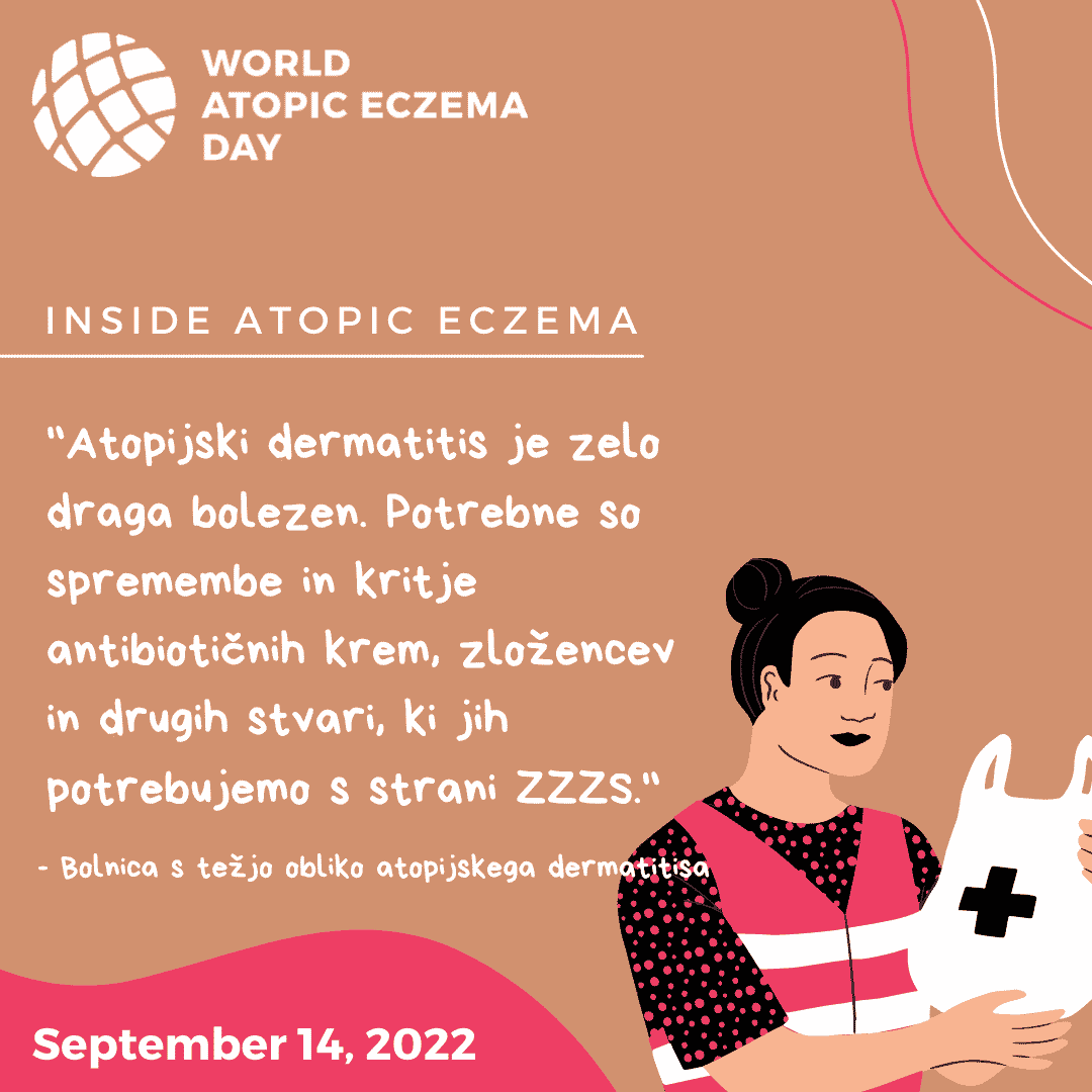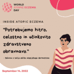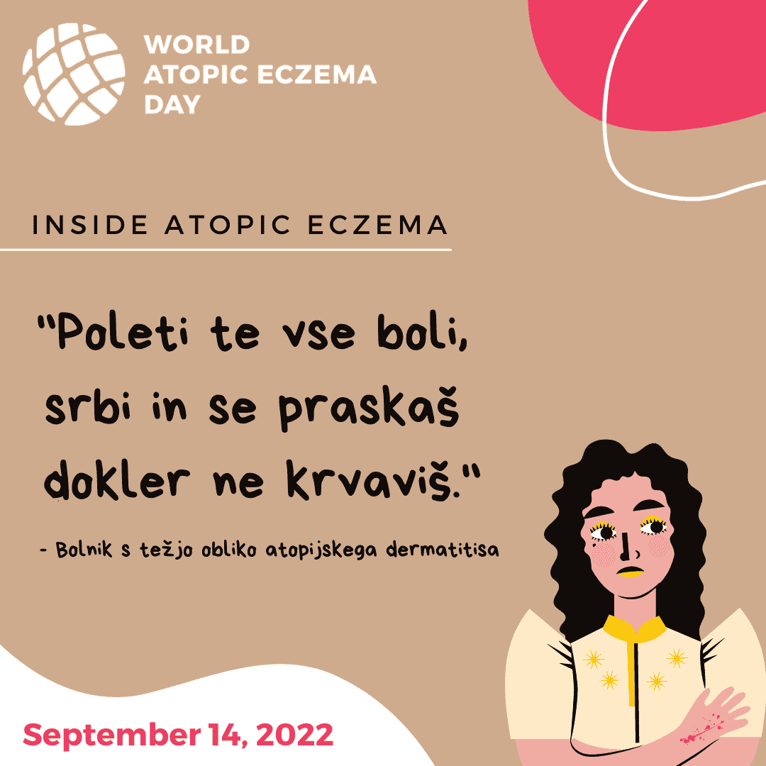 Tema letošnjega svetovnega dneva atopijskega dermatitisa je #InsideAtopicEczema (znotraj atopijskega dermatitisa). Raziskali bomo pet glavnih bremen bolezni: breme izredne fizične bolečine in srbenja, breme za družine in negovalce, finančno breme, duševno zdravje in breme vsakodnevnega soočanja z boleznijo.